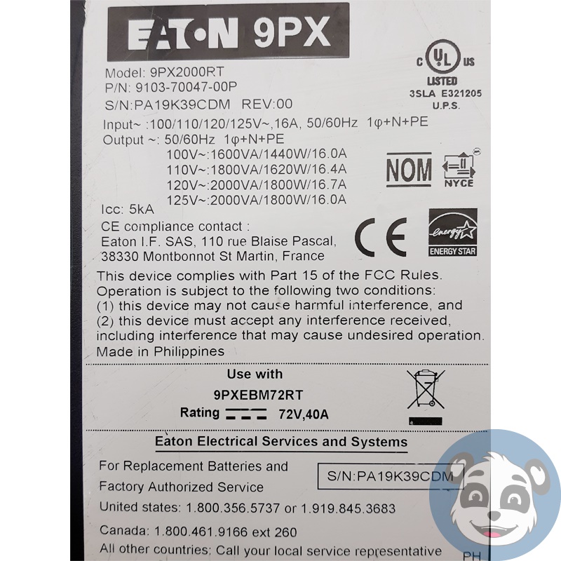 Maintain reliable backup power with this EATON 9PXEBM Back UPS. This preowned unit is in working condition and has been power-on tested. It is classified as Grade B, showing minor cosmetic wear such as scratches and scuffs, as indicated in the pictures. Please review all images for details on its cosmetic condition.