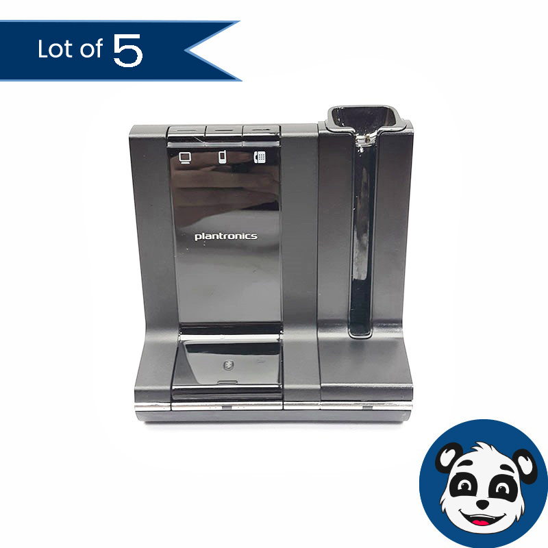 Up for sale is a lot of 5 Plantronics WO2 wireless headset charging bases. Preowned item in working condition, these bases have been tested and exhibit Grade B cosmetic wear, including minor signs of wear and scuffs.