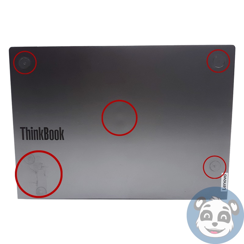 – One (1) laptop does not power on and only shows indicator lights. It has a crack on the right side near the keyboard and cosmetic imperfections. The screen has cosmetic marks caused by keyboard contact, as shown in the pictures.