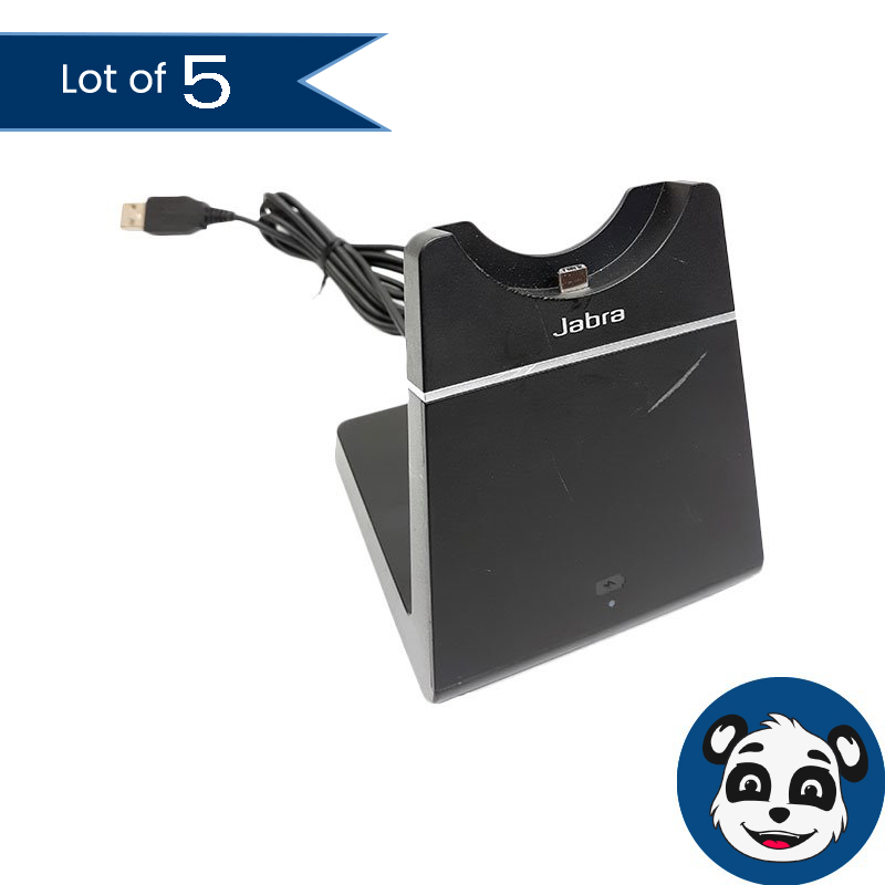 Support your wireless headset setup with this Lot of 5 JABRA Engage E65 / DIV010 Headset Bases and Stands. These preowned units have been tested and are confirmed to be in working condition. They show a Grade B cosmetic condition, with minor signs of wear and cosmetic imperfections consistent with regular use. Please review all provided images for full cosmetic details.